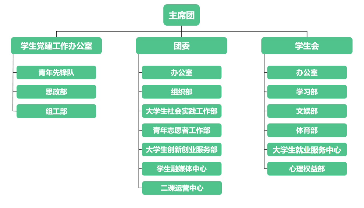 各学生部门负责人,在主席团的带领下开展各项工作。要求:①认真完成部门各项工作(见附件二);②积极配合并落实主席团安排各项安排;③在主席团带领下完善部门内部建设;④熟悉部门各项工作及学院学生组织基本情况。
