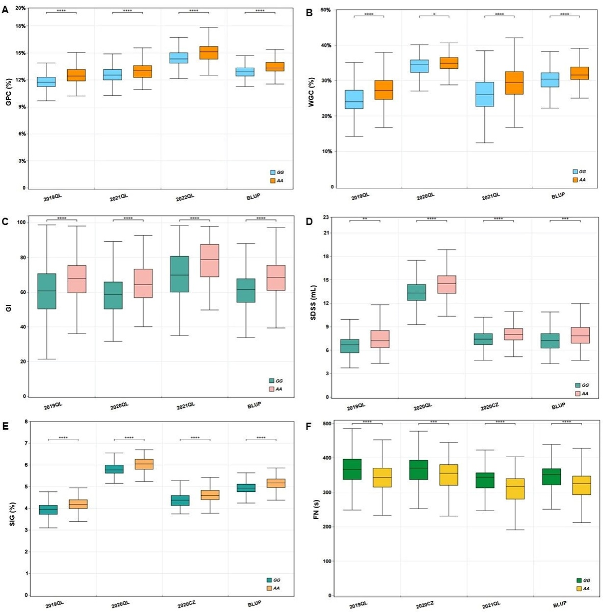 开云手机版登录入口智慧农业系任天恒教授课题组在小麦品质育种和相关QTL发掘工作中取得新进展。该研究以小麦品种川农17和川农11创制的RIL群体为研究材料,通过小麦55K芯片绘制了一张含有8329个SNP分子标记的高密度遗传连锁图谱。通过多年多点对小麦群体的蛋白质含量、淀粉含量、溶胀指数、沉降值、湿面筋含量、面筋指数和降落值进行的测定,结合QTL定位技术,一共定位了92个QTL位点,194个cQTL位点和117个eQTL位点。其中有6个QTL位点,分别是QGPC.sau-4A.1、QWGC.sau-4A、QSDSS.sau-1A.1、QGI.sau-1A、QFN.sau-4D和QSIG.sau-1A被认为是和各性状相关的主效稳定位点。BLAST结果表明除了QFN.sau-4D以外,其他的5个位点为新QTL位点。在QTL簇的分析中,分别在1A、1D、2D、4A、4D和6D染色体上鉴定到8个QTL簇,所有的主效稳定位点均位于不同的QTL簇内。最后,通过6个主效稳定的QTL的侧翼序列,开发了和这6个QTL紧密连锁的分子标记并在不同的群体中进行了验证,实验证明这些稳定主效的QTL位点会显著影响小麦的品质。
