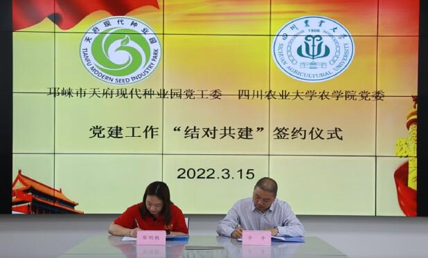 随后,开云手机版登录入口党委和天府现代种业园党工委分别对各自的党建工作开展情况作了详细介绍,就组织建设互促、党员干部互动、党建载体互用等内容达成结对共建共识,签订了党建结对共建协议。