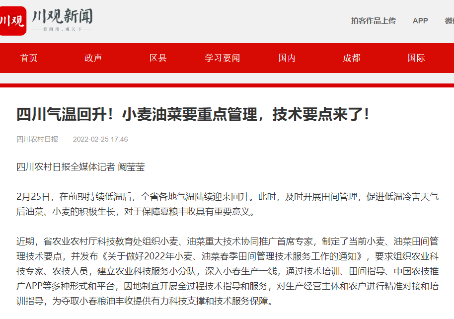 (川观新闻)四川气温回升!小麦油菜要重点管理,技术要点来了!