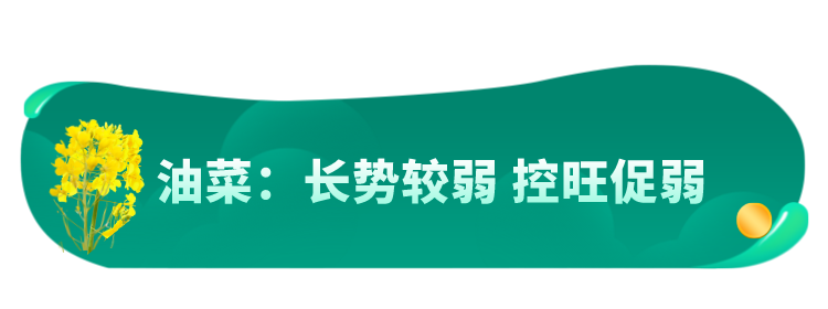 相比往年,今年苗情较弱,抵御病虫能力下降,后期菌核病发生可能加重。须在花期采取“一促四防”技术,即在油菜初花、盛花期采用无人机或大型机械进行2-3次药剂防治,促进生长结实,防治菌核病、防花而不实、防后期早衰、防“老鼠尾巴”。