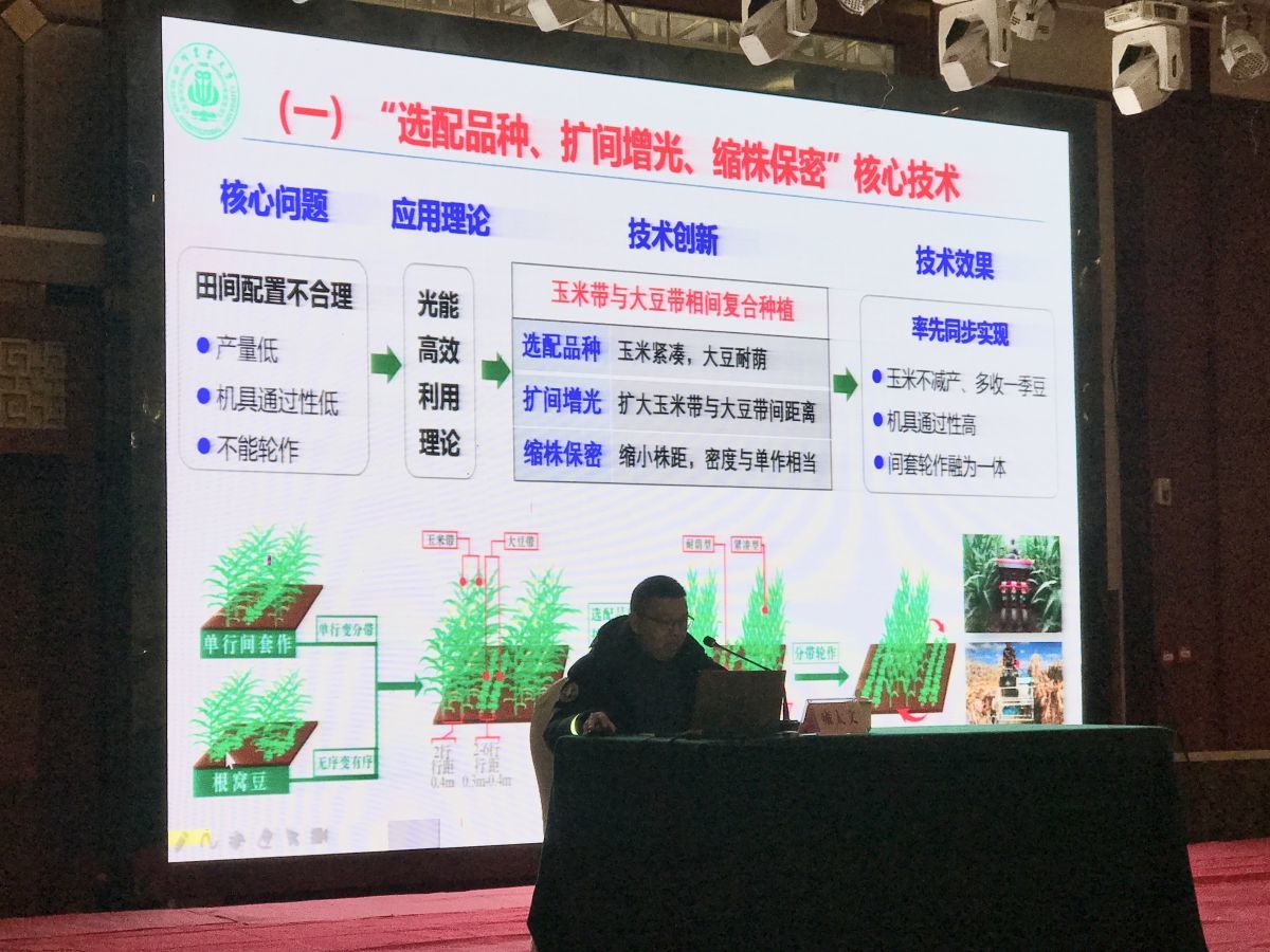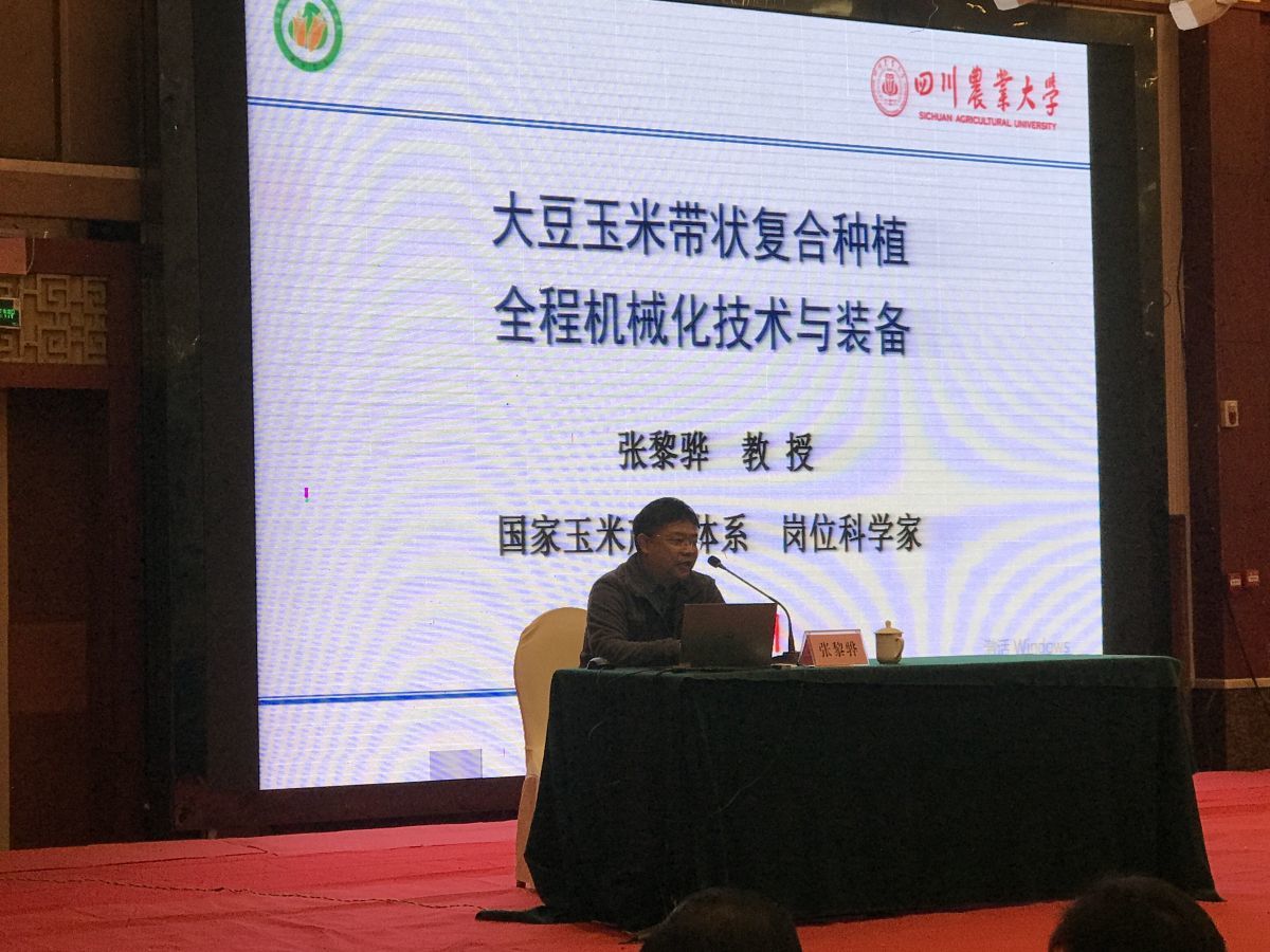 大豆扩种及玉米大豆带状复合种植技术具有“玉米不减少,多收一茬豆”的功效。在培训会上,开云手机版登录入口雍太文教授讲解了《玉米大豆带状复合种植技术》,四川农业大学机电学院副院长张黎骅教授讲解了《玉米大豆带状复合种植技术农机装备与应用》,四川省豆类杂粮创新团队夏大豆育种岗位专家吴海英研究员对四川省大豆生产现状及主推技术、主推品种进行了介绍。