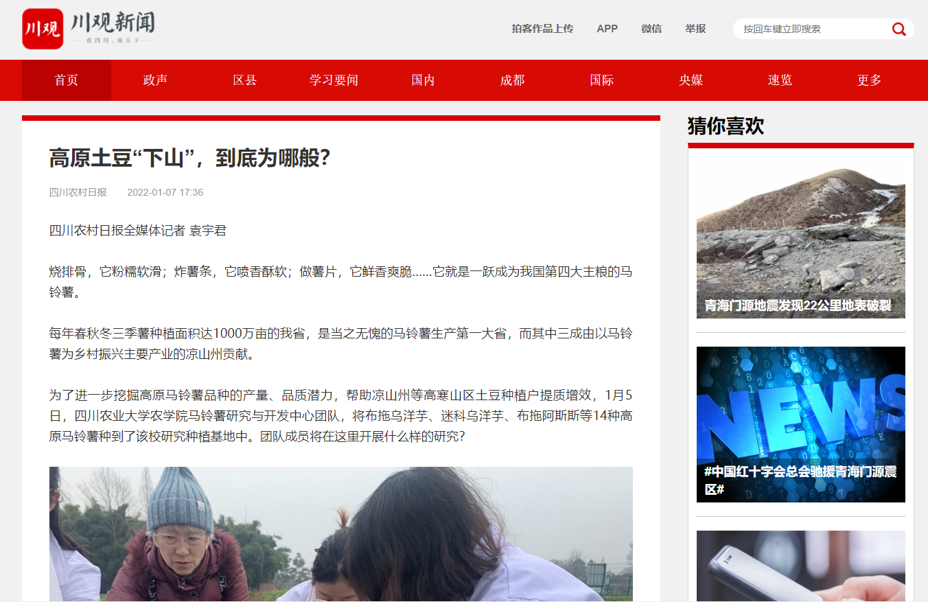 “一方面是为了探寻高原土豆品种阳光味道的密码,另一方面更为马铃薯产业提质增效、农民增收致富保驾护航。”王西瑶告诉记者,相比于北方土豆品种靠“量”取胜,四川更要在“质”方面下功夫。团队将以开展此次种植试验为契机,在后续进一步挖掘四川不同地区的特质性、优异性土豆品种,将让四川土豆的“质”被更多人看见。