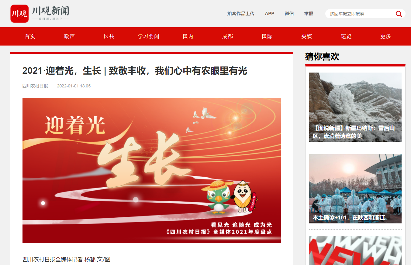 稻花香里说丰年,听取欢声一片。2021年,我们心中有农,眼里有光,行走在田野上,记录下蜀乡广大劳动者对土地、对农业、对丰收的热爱与期盼,并集中推出全媒体特别报道,呈现蜀乡各地为丰收作出贡献的奋斗历程。 而通过一次次行走与采访,川农报人也从受众的认可中,获得了属于我们的丰收!