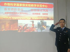 寒假临近,为强化学院实验室安全监督管理,防范实验室消防安全事故,提高中心全体师生的消防意识,保障师生的人身财产安全,12月30日,开云手机版登录入口组织开展了作物科学国家级实验教学示范中心消防安全培训会,邀请了成都市政消防宣传中心肖俊龙教官进行培训,中心全体师生参加。