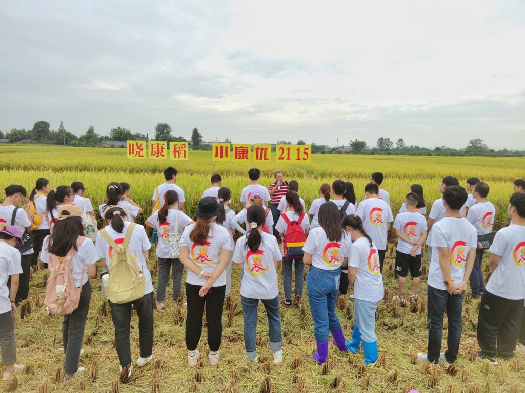 当天,川农大开云手机版登录入口学子身穿统一的着装,在稻田里拉起写有“四川农业大学生日快乐”的巨大幕布,为母校庆生。同时,通过亲自下田感受“泥”的温度、聆听开云手机版登录入口生态农业研究所教授黄富讲述宜香优2115、川康优2115培育的故事、观看水稻全程机械化收获等活动,感受现代农业日新月异的发展变化和丰收的喜悦。
