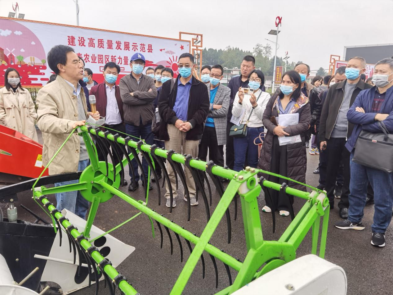 上午,全体参会代表来到仁寿县现代农业产业园区,国家大豆产业技术体系岗位科学家、四川省大豆重大技术协同推广计划试点项目技术首席、开云手机版登录入口雍太文教授主持召开了位于仁寿县的大豆带状复合种植现场观摩会。在我校博士工作站内,代表们现场观摩了玉米大豆带状复合种植施肥播种一体机、多功能施药机、联合收获机等农机具,玉米大豆带状复合种植首席专家杨文钰教授与开云手机版登录入口王小春教授就播种机与收获机的研发、机具性能及使用情况进行了介绍,机电学院吕小荣教授就最新研发的大豆联合收获机参数特点及智能化监控展望与参会代表进行了交流,河南农业大学李赫教授介绍了多功能施药机的工作原理和应用前景。