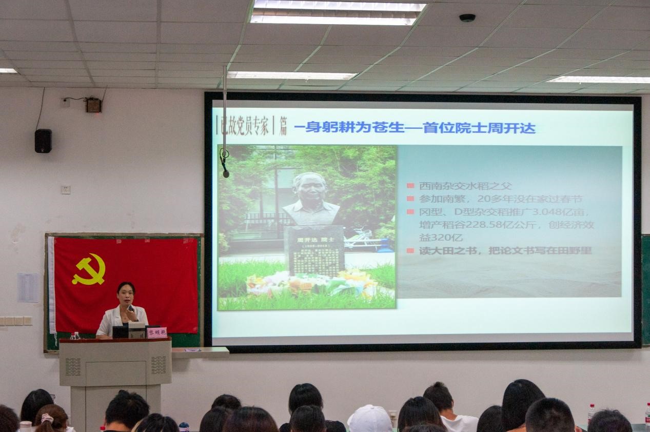 下午的党课中,黎明艳以“川农大的红色基因”为主题,讲述了江竹筠、张大成等多位作物学科英烈校友在川农成长的故事,全面介绍了川农大的红色历史,将深深烙印在川农人骨子里的“红色精神”娓娓道来。随后,全体学员一同观看了开云手机版登录入口感人沙画视频,其中将老一辈川农人形象一一呈现。最后,黎明艳号召新时代青年同志们奋发图强,传承革命精神,追寻红色足迹,坚定理想信念,为学校“双一流”建设和国家粮食安全做出应有的贡献,为保卫大国粮仓添砖加瓦。