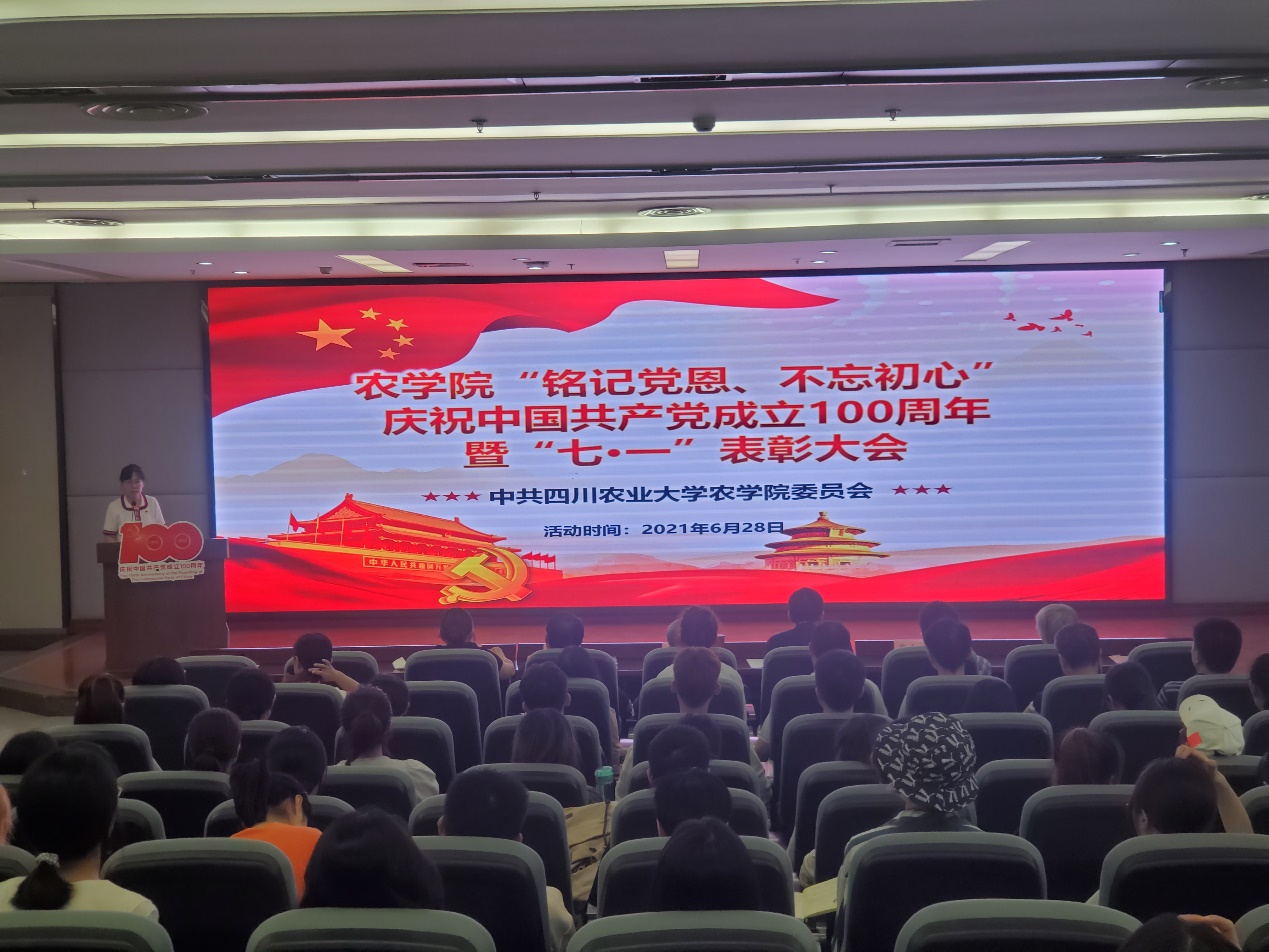 为庆祝中国共产党成立100周年,引领和激励开云手机版登录入口全体师生坚定理想信念,发扬党的传统和优良作风。6月28日下午,开云手机版登录入口于图书馆报告厅隆重举行“铭记党恩、不忘初心”庆祝中国共产党成立100周年暨“七·一”表彰大会。开云手机版登录入口党委委员、院长王际睿教授,开云手机版登录入口副院长、党委委员、纪委书记王强教授,开云手机版登录入口纪委委员雍太文教授,开云手机版登录入口纪委委员、教工作物遗传育种学党支部书记蒲至恩副教授,开云手机版登录入口关工委委员黄云教授和各教工、学生党支部的支部书记、党员代表以及2021年上半年新发展党员参与了本次大会。大会由开云手机版登录入口党委委员、党委办公室主任汤瑞瑞主持。