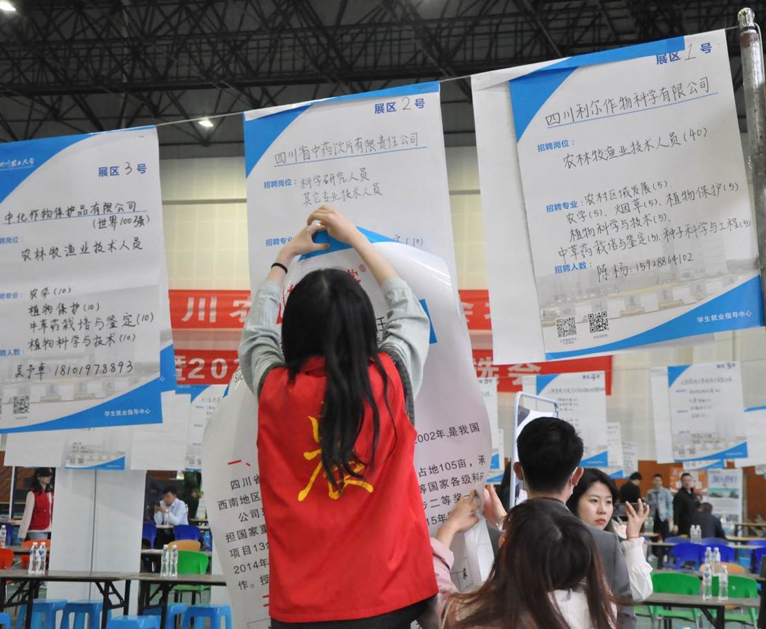 4月22日,2021届毕业生春季双选会在风雨操场举行。本次双选会吸引到四川省中药饮片有限责任公司、四川国光农化股份有限公司、四川利尔作物科学有限公司等八十多家企事业单位来到开云手机版登录入口展区招揽人才。学院领导班子全体成员和团委办公室老师也全部到场与用人单位亲切交流。