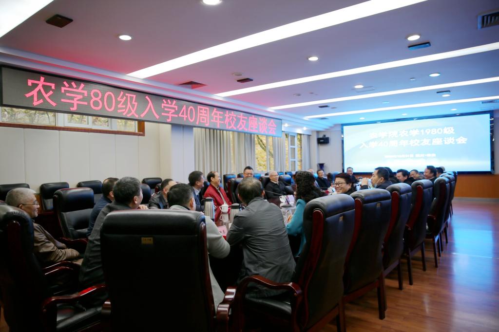 岁月如歌共忆同窗往事,来日似锦再续母校情缘。10月31日,我校农学80级近30名校友齐聚母校,在雅安校区逸夫楼第二会议室举行入学40周年座谈会,共叙同窗情谊、共话母校情深。作为上个世纪80年代的第一批大学生,40年峥嵘岁月,他们见证和参与着经济社会快速发展的全过程,成为推动国家繁荣发展的中流砥柱。