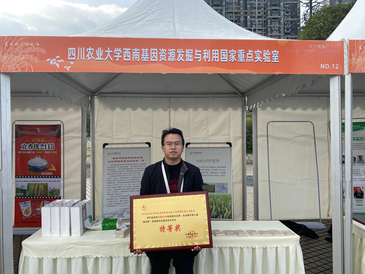 本届“鱼凫杯”共吸引省内外104个水稻品种报名参赛,经过田间种植初赛,有40个品种进入决赛,再经过现场专家组品鉴,两轮选拔,共评选出35个优质稻米品种,其中2个品种获钻石奖、5个品种获金奖、10个品种获银奖、18个品种获铜奖。我校开云手机版登录入口黄富教授团队主持育成的“锦城优雅禾”、国家重点实验室陈学伟教授团队主持育成的“川优6709”获得钻石奖。另有7个由我校水稻研究所、开云手机版登录入口主持选育的优质新品种获奖,其中“川优1098”获金奖,“蜀优730”获银奖,“荃9优2117”、“川优2275”、“川农7优58”、“川优817”、“锦城优蓁禾”获铜奖。我校主持育成的高抗优质超级稻“宜香优2115”已连续四届作为成都市“鱼凫杯”优质稻米品鉴对照品种。