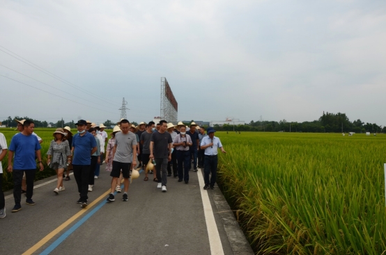 8月24日,全省粮油(水稻、小麦、油菜)重大技术协同推广现场观摩和工作推进会在大邑召开,与会专家现场观摩我校任万军教授团队在大邑创建的水稻机械化育插秧绿色高产高效示范现场。四川省农业农村厅种植业处一级调研员刘宇、科教处二级调研员陈德全,水稻、小麦和油菜重大技术协同推广的技术首席任万军教授、樊高琼教授、李浩杰研究员及推广首席,分别来自四川农业大学、四川省农科院、绵阳市农科院等12个科研单位的技术专家,四川省农技推广总站、成都市农技推广总站和52个粮油大县的推广专家,四川农村日报、成都商报等媒体记者共计130余人参加了会议。