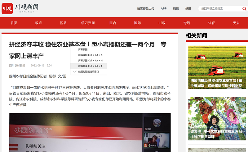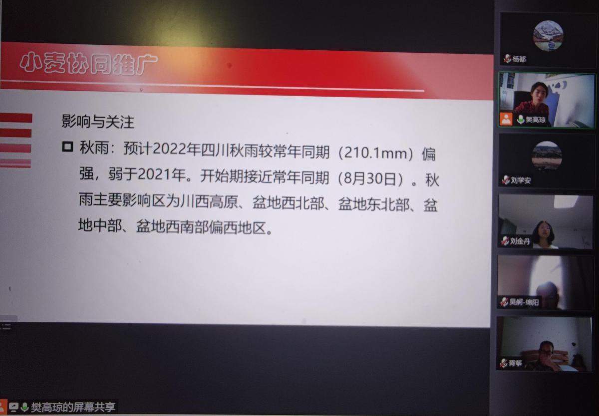 在进行网上会商时,2022年四川农业重大技术小麦协同推广计划技术首席、四川农业大学教授樊高琼向大家表示,尽管暂时无法到田间工作,但利用网络提前做好准备,是我省小麦专家在异常天气日益频繁的背景下,就四川小麦产业如何为建设更高水平“天府粮仓”助力的一次有益探讨。