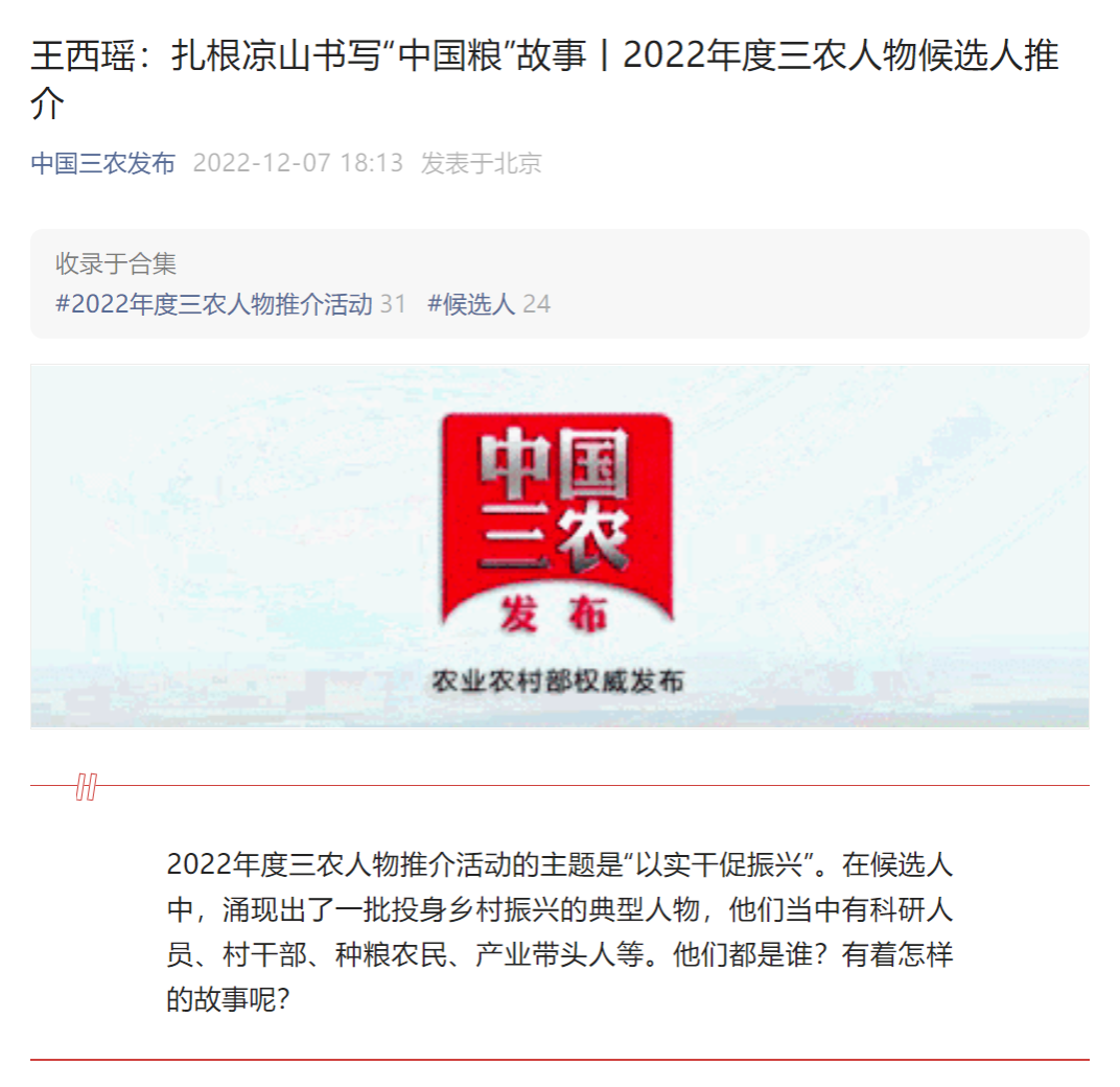 2018年,王西瑶带领研究生在四川省布拖县布江蜀丰农业科技示范园成立了布拖马铃薯科技小院,进行马铃薯品种培育和技术推广,在大凉山的土地上奏响了脱贫攻坚、乡村振兴的曲调。对于凉山州乃至四川省马铃薯产业发展存在的瓶颈问题,长期从事薯类种薯繁育、贮藏与营养研究的王西瑶,也一直在寻求新的突破。布拖马铃薯科技小院将脱毒复壮的种薯再交到种植者的手中,恢复高产优质的马铃薯,又会在新一轮生长中,谱写布拖县的传奇。