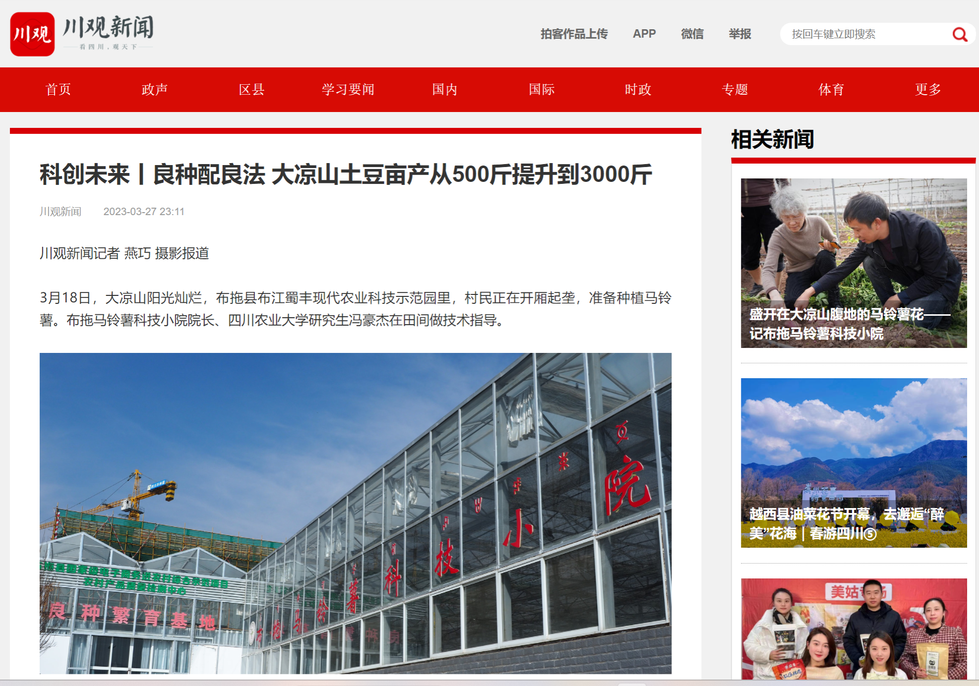 5年扎根大凉山,专注土豆耕耘,让布拖乌洋芋的产量从亩产500斤提升到3000斤。3月18日,记者前往布拖马铃薯科技小院探访。