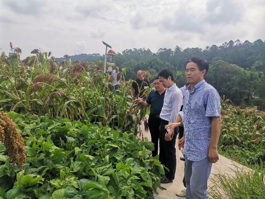 接连的几场夏雨,极大地缓解了自贡市富顺县今年持续许久的旱情,田里的水稻加快生长,地里的大豆绿意盎然。8月2日,全国大豆玉米带状复合种植专家指导组组长、四川农业大学教授杨文钰先后来到富顺县邓井关街道春光村玉米大豆带状复合种植示范片、富世街道丁海村玉米大豆带状种植千亩方和琵琶镇艾家村高粱大豆带状复合种植示范片,实地指导当地大豆生产。