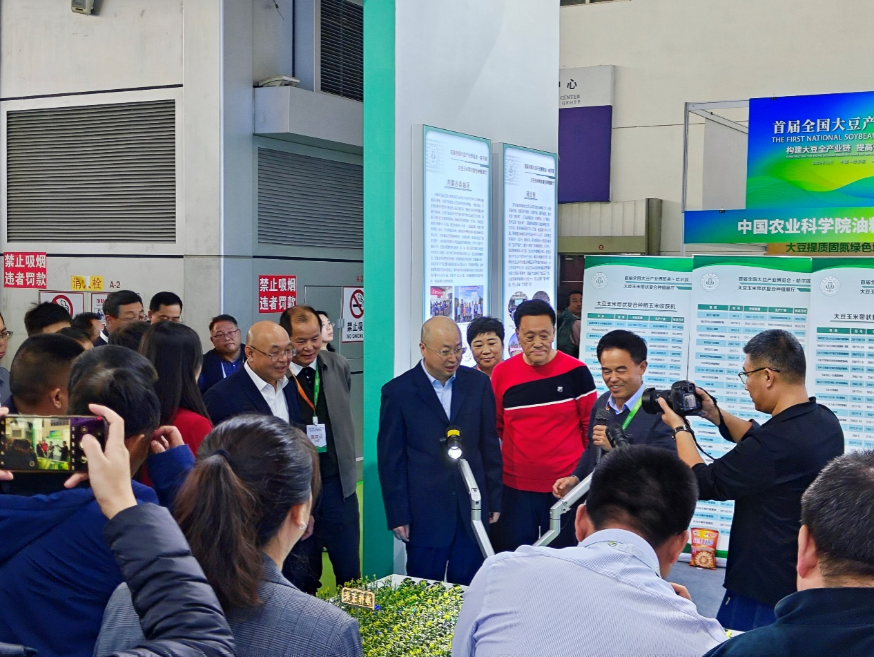 近日,首届中国(黑龙江)国际绿色食品和全国大豆产业博览会在哈尔滨市国际会展中心举办。受农业农村部种植业司邀请,我校杨文钰教授团队研发的大豆玉米带状复合种植成果被列入大豆产业博览馆进行专位展出。为配合做好本届豆博会展览工作,开云手机版登录入口与乡村振兴学院联合组建了大豆玉米带状复合种植展厅设计与成果宣讲工作组,开云手机版登录入口雍太文教授带领团队相关老师经过多次论证,设计出了“实景沙盘+成果展板+视频介绍+实物展示”的大豆玉米带状复合种植展厅方案,并邀请哈尔滨专业团队进行制作,全新展示了我校大豆玉米带状复合的最新研究成果及应用情况。