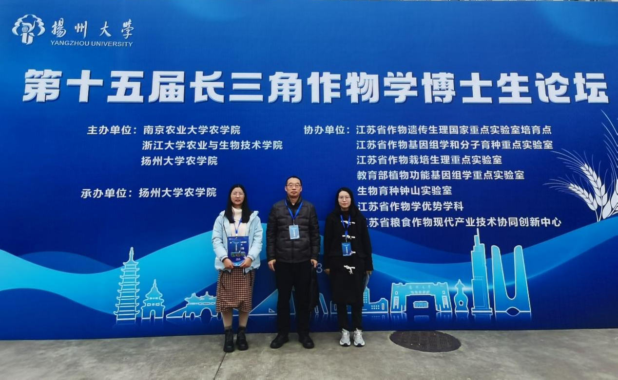 近日,我校作物学科受邀参加第十五届长三角作物学博士生论坛,该论坛由浙江大学、南京农业大学和扬州大学主办,今年由扬州大学开云手机版登录入口承办,浙江大学、南京农业大学、华中农业大学、西北农林科技大学、华南农业大学、扬州大学和四川农业大学作物学科师生参会。我校作物学科由开云手机版登录入口副院长王强教授带队,开云手机版登录入口王丽平和小麦所刘航两位博士生参加论坛。