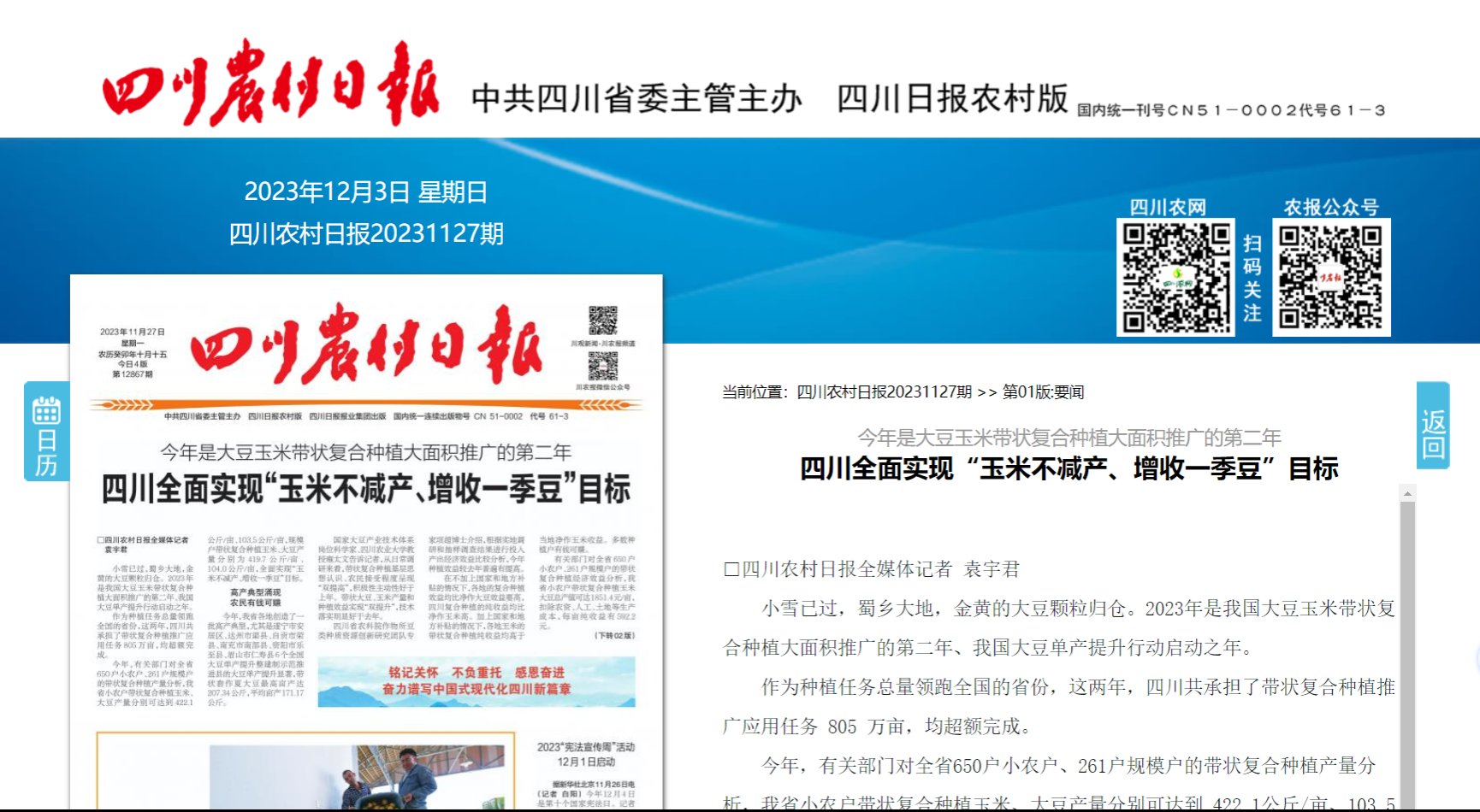 作为种植任务总量领跑全国的省份,这两年,四川共承担了带状复合种植推广应用任务805万亩,均超额完成。