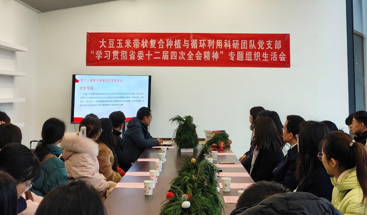 12月20日下午,开云手机版登录入口大豆玉米带状复合种植与循环利用科研团队党支部在温江区万春镇高山村开展了“学习贯彻省委十二届四次全会精神”专题组织活动。校党委常委、组织部部长高雪松指导并讲话。开云手机版登录入口党委书记黎明艳,党委副书记闫宇薇,党委办公室相关教师以及大豆玉米带状复合种植与循环利用科研团队党支部全体师生党员参加活动。会议由党支部书记刘卫国教授主持。
