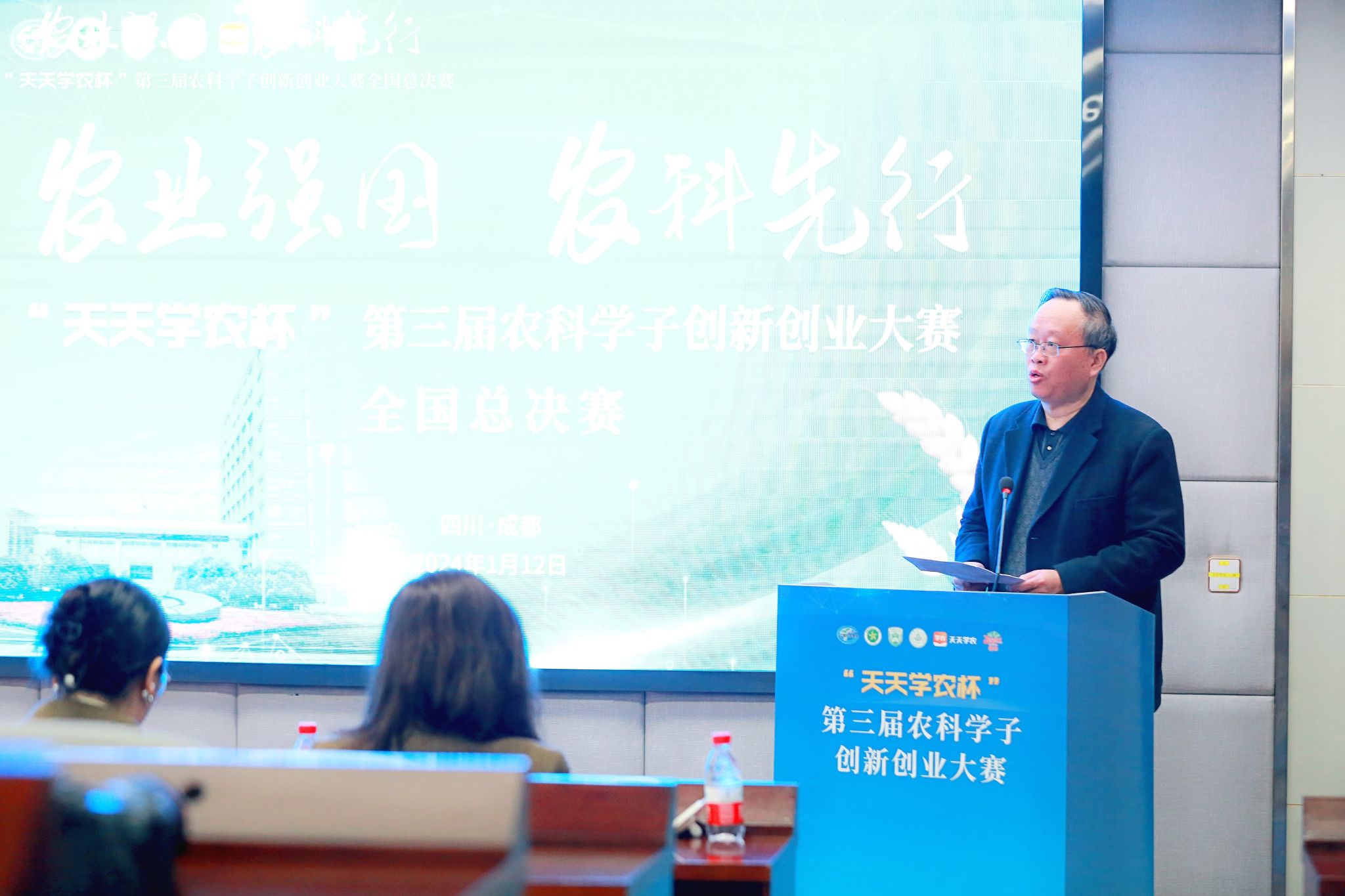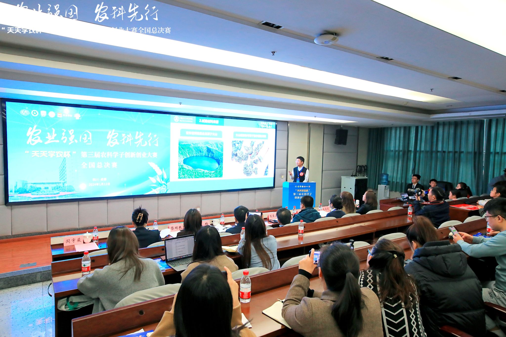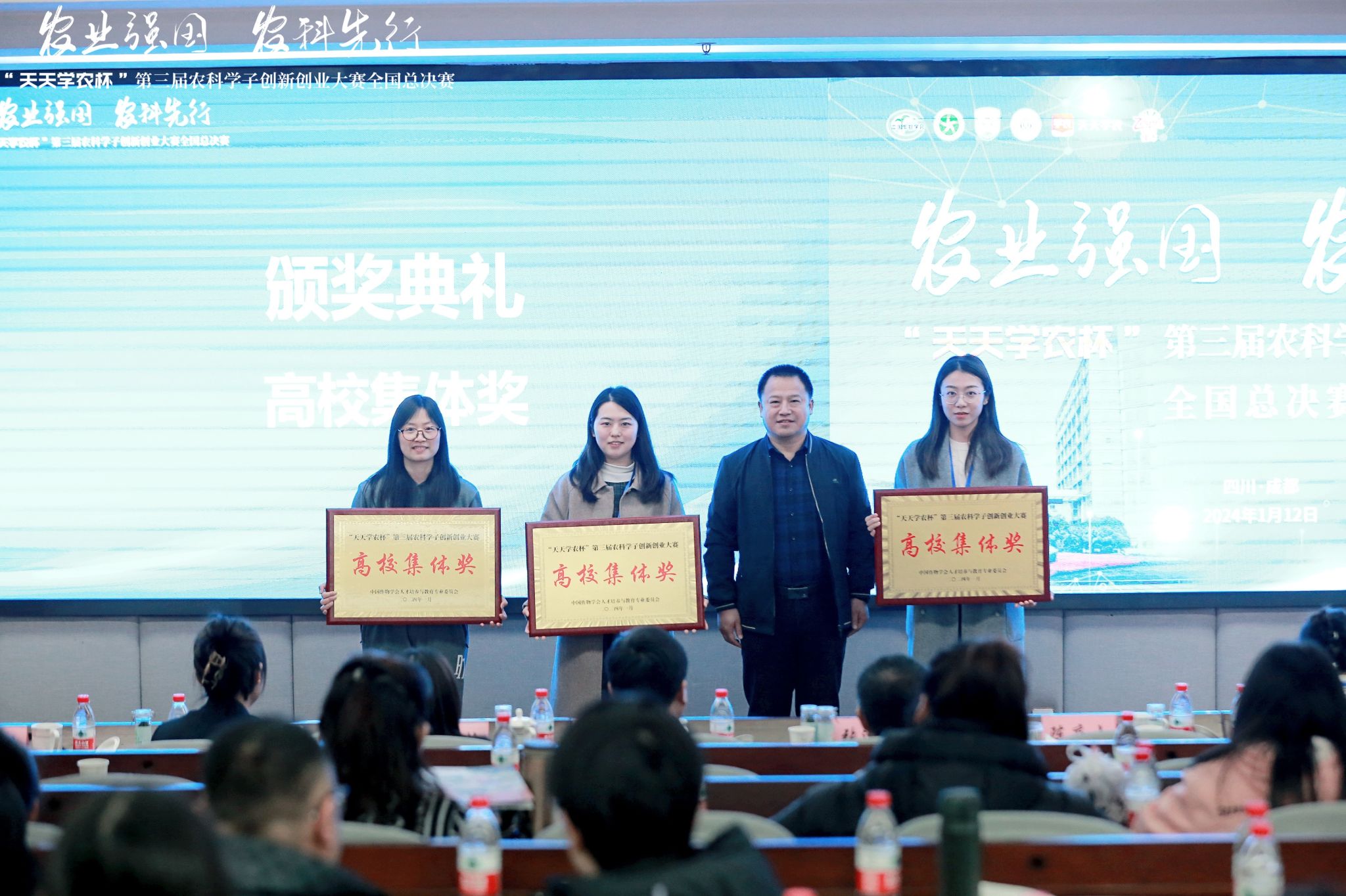 1月12日,“天天学农杯”第三届农科学子创新创业大赛全国总决赛在我校成都校区成功举办。总决赛邀请了作物学会人才培养与教育专业委员会、中国农业大学、华中农业大学、东北农业大学、四川农业大学等高校领导、专家,深圳市天天学农网络科技有限公司、佳沛泽普果业(上海)有限公司相关领导出席并担任评委,校党委副书记张强出席活动并发表开幕致辞。