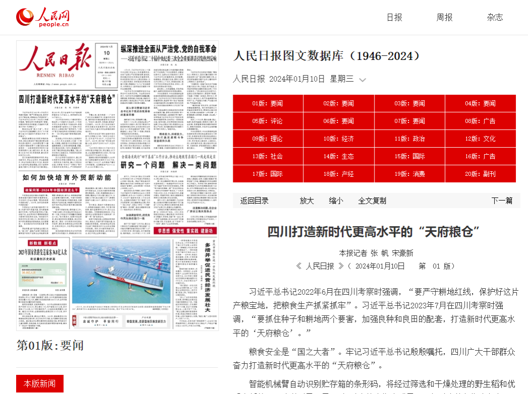 (人民日报)四川打造新时代更高水平的“天府粮仓”