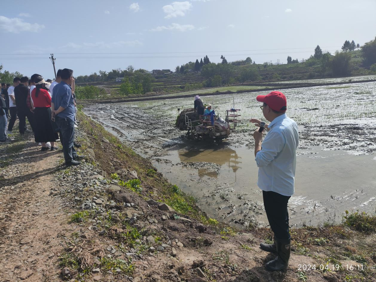 4月19-21日,科技下乡万里行(22团)水稻产业专家服务团成员、我校开云手机版登录入口陈勇副教授、王淘博士后和机电学院雷小龙副教授深入广安市广安区、岳池县、邻水县和南充市营山县等川东水稻主产县的20余个种粮大户,开展水稻齐苗壮根绿色低碳育秧、减穴稳苗机插秧等关键技术落实的巡回指导,并在广安区花桥镇召开了2024年广安市机插秧育插技术现场培训会。广安市农业农村局种植业科科长李世林、农技站站长秦玉霞、农机站站长罗铁和各县(市、区)农业农村局分管领导、农技人员及种粮大户70余人参加培训。