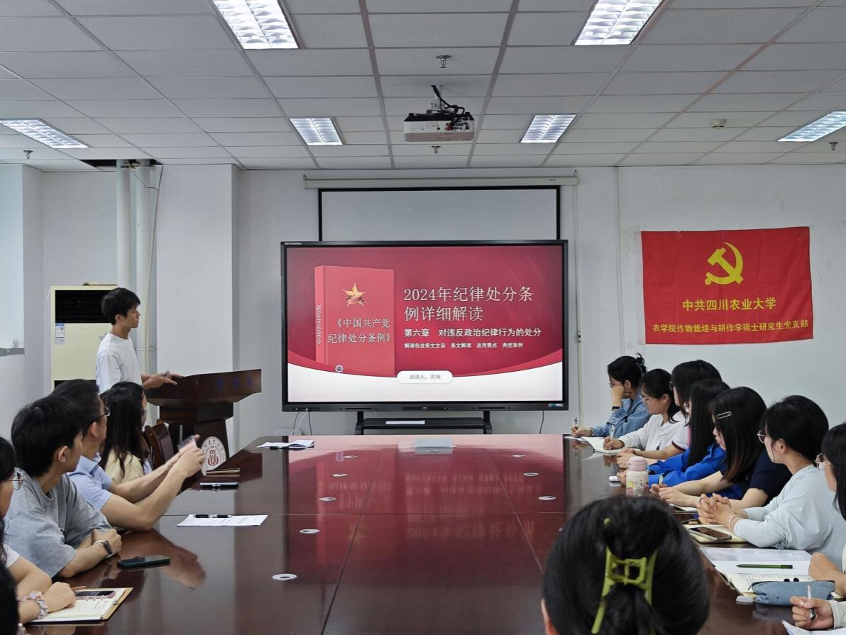 为扎实推进党纪学习教育走深走实,5月30日下午,我校全国高校“百个研究生样板党支部”——开云手机版登录入口作物栽培学与耕作学硕士党支部开展了以“铭‘纪’于心慎于行,清廉底色绘人生”为主题的党纪学习教育专题组织生活。开云手机版登录入口作物学科博士党支部等五个研究生支部观摩学习。