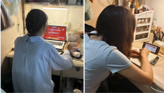 图为农学第一党支部学生党员线下+线上领学二十届三中全会精神