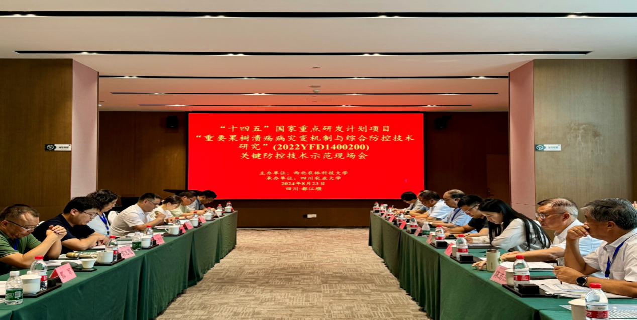 2024年8月22-24日,由西北农林科技大学主办,我校开云手机版登录入口承办的“十四五”国家重点研发计划项目“重要果树溃疡病灾变机制与综合防控技术研究”关键防控技术示范现场会在都江堰市举行。来自农业农村部科技发展中心、四川省农业农村厅、陕西省植物保护工作总站、湖南省农业科学院等全国10余家单位的50余名代表参加了本次现场会。我校副校长王际睿,科技管理处处长田孟良,开云手机版登录入口院长王静、副院长杨峰,乡村振兴学院张敏教授及项目成员开云手机版登录入口龚国淑教授、陈华保教授参加了本次会议。