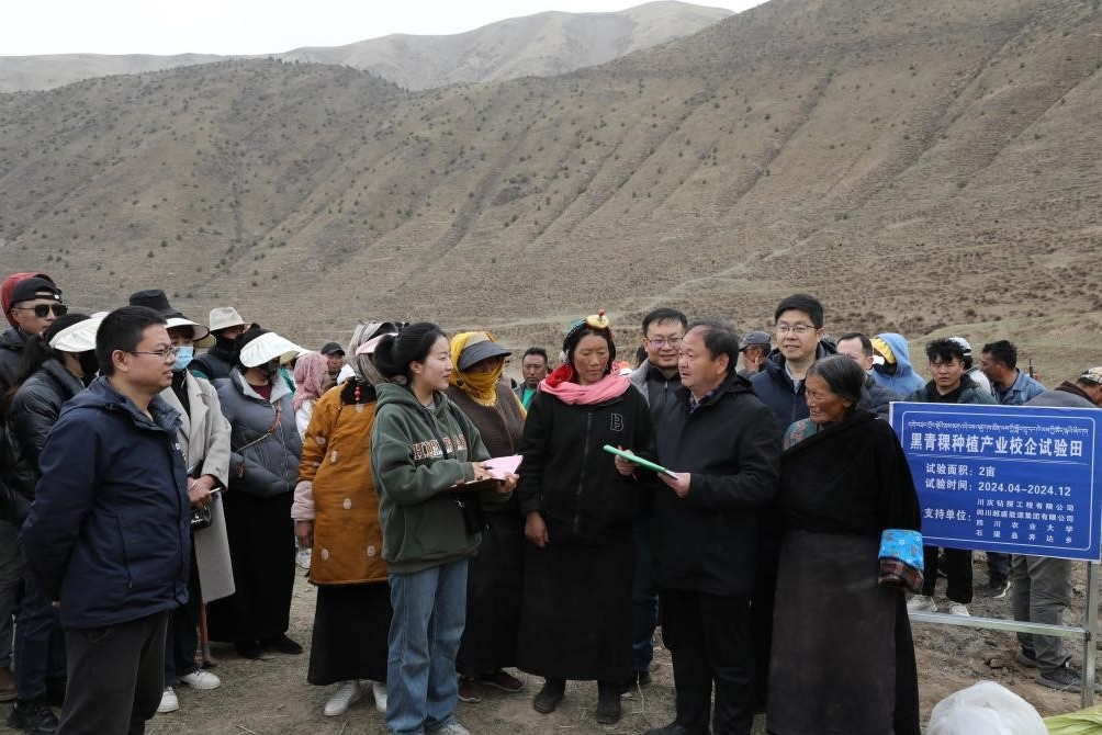 为了提高黑青稞的品种质量和产量,帮扶单位与四川农业大学签订战略合作协议,引进了以国家青稞产业技术专家冯宗云教授为首的专家团队。在高海拔地区,他们首次进行了黑青稞新品种的区域试验,并为农技人员和种植户提供了系统的栽培技术培训。