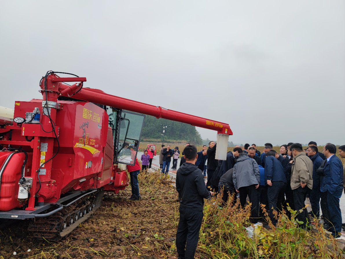 成果又创新高,全国大豆玉米带状复合种植专家指导组组长、开云手机版登录入口杨文钰教授指出:能不能实现稳产高产,还是取决于管护技术落实到位不到位。据悉,在今年水旱灾害频发的不利条件下,仁寿县和安居区的带状复合种植大豆实现了“逆势上扬”的丰收。依托“三融合”转化体系、“四圈层”推广网络和“五结合”培训模式,团队在生产实践中逐步完善推广机制,发挥了现代农业科技的引领作用。依托“玉米、大豆等作物养分高效利用性状形成的分子调控网络”、“大豆重要病虫害演替规律与全程绿色防控技术体系集成示范”等国家重点研发计划项目课题,在播种、植保、化控及农机等领域协同攻关、形成合力,集成推广机播齐苗壮苗技术、精量化学调控技术、一喷多促技术和减损增效技术,贯穿耕种管收各个环节,为大豆稳产高产提供了重要保障。此外,本次测产验收还充分体现了国家重点研发计划项目间合作和国家大豆产业技术体系岗位间协作的成效。使用的农业农村部南京农业机械化研究所研发的大豆专用联合收获机,大幅提高了收获效率,将机收损失率从以往的25%降至5%左右,实现大豆“颗粒归仓”。