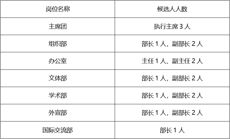经公示无异议,提交开云手机版登录入口研究生代表大会,新一届研究会主席团成员由研究生代表大会选举产生。按照院研究生会执行委员会主席团成员不超过3人,拟提名候选人5人(差额2人)进行差额选举。