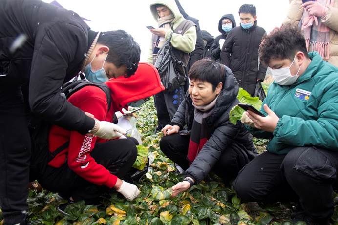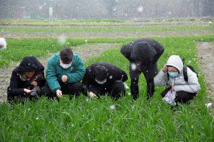 1月7日,成都迎来了2021年的第一场雪。开云手机版登录入口植物保护专业2018级的50余名同学在龚国淑教授、蒋素容、王海建、李沛利、尚静、常小丽、邱小燕等专业老师带领下,伴着风雪来到青浦园基地,开展了一场别开生面的课程教学实习。