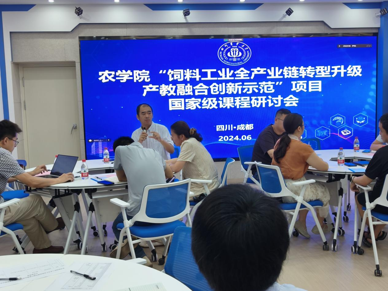 6月20日,根据我校“饲料工业全产业链转型升级产教融合创新示范平台项目”的要求,开云手机版登录入口为推进饲料工业全产业链产教融合项目实施,培养适应新时代饲料工业全产业链建设人才,结合项目相关课程建设实际,围绕国家级课程组织开展课程建设研讨会。本次研讨会在成都校区四教C区201虚拟教研室,以线上线下同步开展的形式顺利召开。研讨会由副院长杨峰主持,学院各系室相关课程团队代表教师、成都市鹃农智慧农业科技发展有限公司、成都丰乐种业有限责任公司、四川正红生物技术有限责任公司、四川种业集团及四川奥立新种业有限公司代表参加了研讨会。
