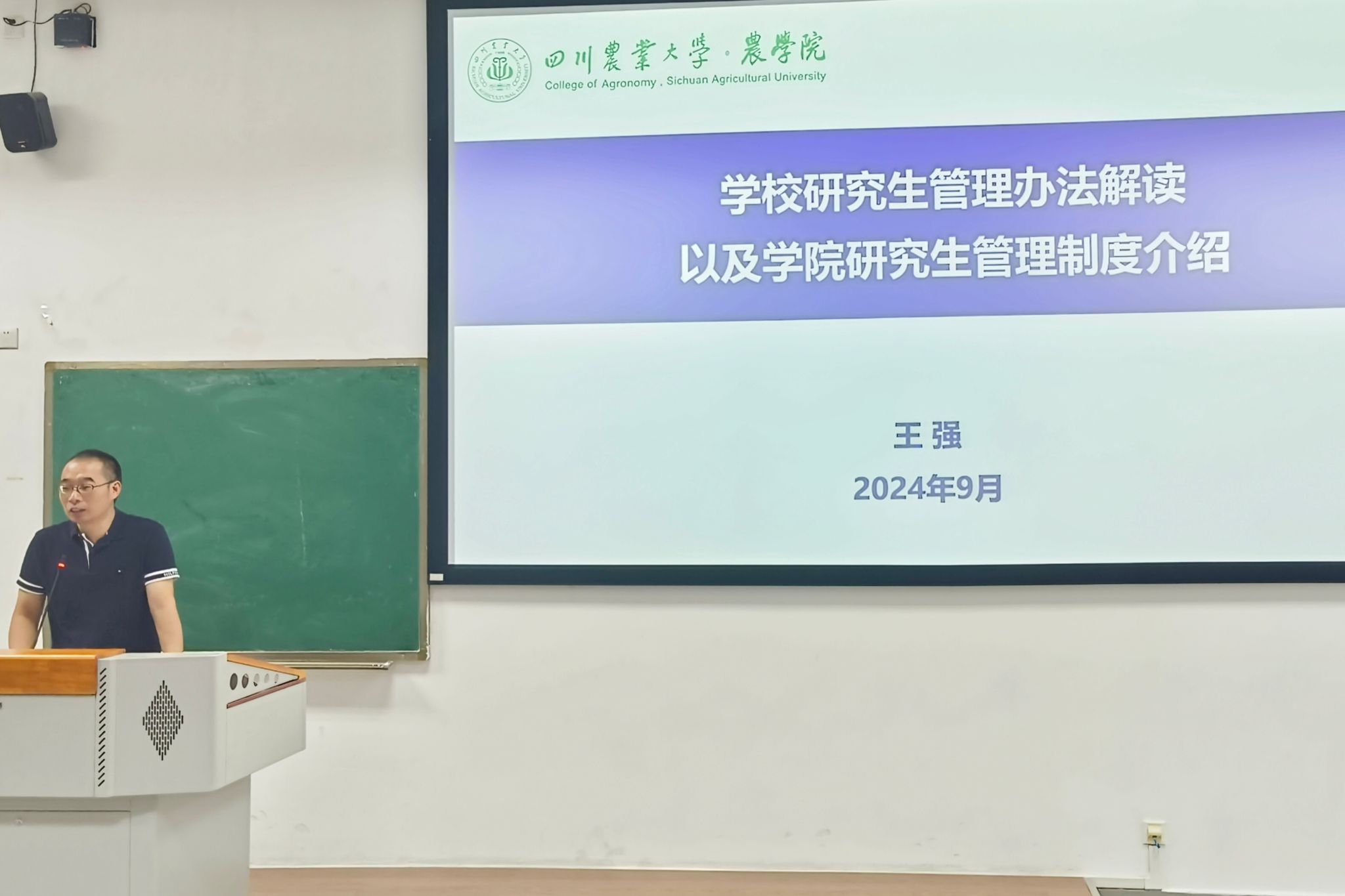 图3 副院长王强解读学校研究生管理办法