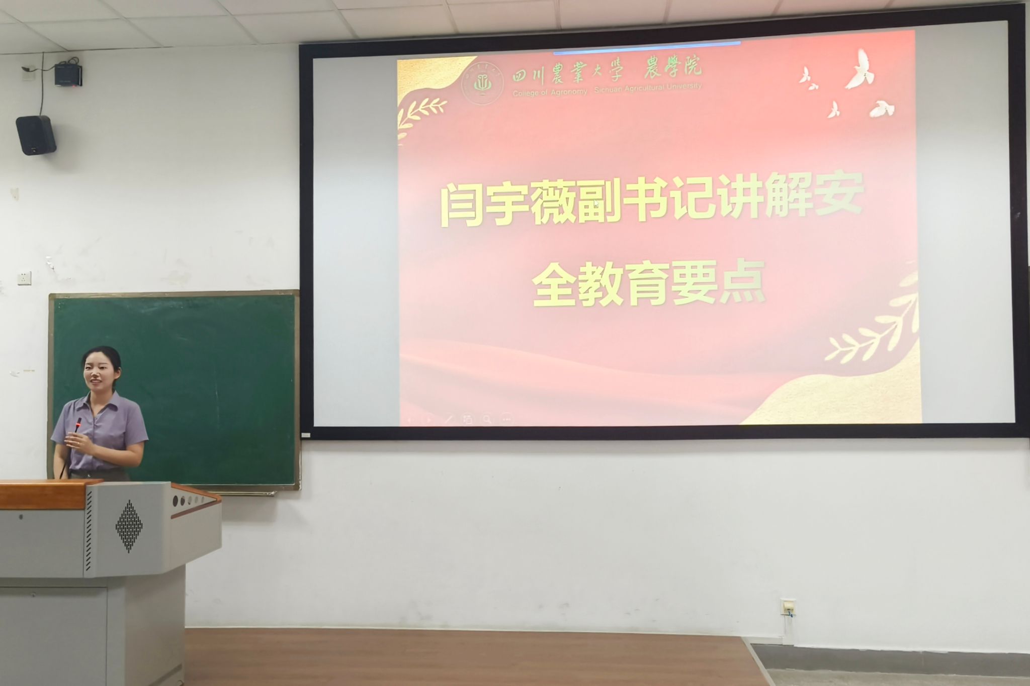 院长王静首先代表学院全体师生向新生表示热烈的欢迎和诚挚的祝贺,接着从学院基本情况、学科专业概况和研究生培养质量三方面对学院、学科的发展进行介绍,并对全体新生提出殷切期望,“希望同学们肩负起强农兴农的使命担当,在新时代、新征程做出新的更大贡献!”党委书记唐城用红色文化基因的融入与沉淀、历代川农名师的缔造与践履、新时代的学科文化传承三个主题讲述了“川农大精神”的内涵,向全体研究生提出了继承、发扬川农大精神的要求和期盼。随后副院长王强向全体新生详细解读了学校研究生管理办法、研究生培养方案、学院研究生管理体系以及研究生国际交流政策。副院长杨峰围绕实验平台与基地情况以及实验室安全教育的内容做了详细介绍,嘱咐同学们进行实验的首要条件是安全,希望同学们科研用心,实验用心,安全放心。党委副书记闫宇薇结合学校关于交通安全的相关文件,对全体新生进行交通安全教育,更是结合国防安全相关案例,希望全体新生加强安全意识,要坚定政治立场,警惕网络安全。教授委员会主任唐宗祥以“科研道德与诚信”为主要议题展开讲解,从学术诚信的基本定义出发,指出出现学术不端行为的诱因以及国家对学术道德与科研诚信的重视,并结合案例提出讨论,引发全体研究生的深刻思考。最后,研究生会主席周会娴进行了开云手机版登录入口研究生会的招新宣讲。