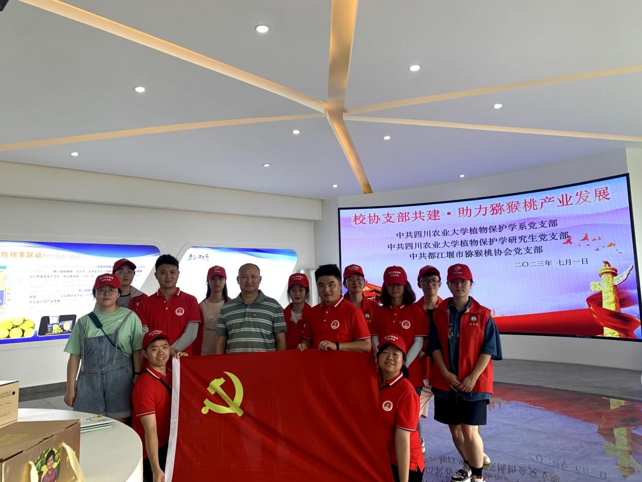 在中国共产党成立102周年之际,为深入贯彻学习党的二十大精神,践行习近平总书记关于科技小院的“回信精神”,深入推进学习贯彻习近平新时代中国特色社会主义思想主题教育,探索“支部共建+党建引领+科技服务+社会实践”新形式。7月1日,开云手机版登录入口“都江堰猕猴桃科技小院”博士科技助农服务团联合植物保护学研究生党支部,都江堰市猕猴桃协会党支部和开云手机版登录入口“猕果良医”社会实践团前往都江堰精华灌区天马粮果联动智慧农业产业园开展“校协支部共建·助推猕猴桃产业发展”主题党日活动。