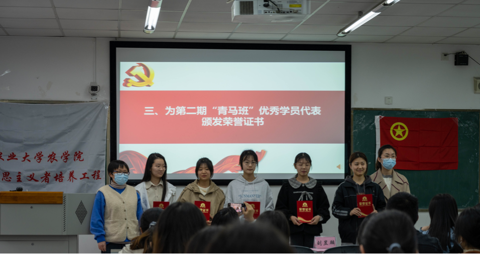 团委老师刘昱麟、贾佳为青马班优秀学员颁发证书