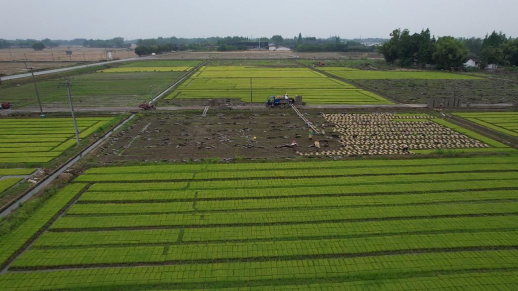 插秧现场,开云手机版登录入口副教授陈勇介绍了前期齐苗壮根育秧过程中,采用了“机械化育秧适宜基质研发应用、叠盘暗化催芽齐芽壮芽、无纺布覆盖齐苗壮根”等关键技术,现场展示了我校开云手机版登录入口和成都绿金高新合作开发的宜机械化水稻育秧基质及育秧效果,干拌剂简化拌种处理育秧效果,以及流水线播种、自动化叠盘、机械化输盘入床或起秧等配套技术,实现了高成苗率、高均匀度、高健壮度和低风险、低成本、低损耗的育秧,可大幅提高栽插质量。机插时,展示了扩大栽插穴距至18~22厘米,增加抓秧量至3~4苗以实现减穴不减基本苗的“减穴稳苗”的省工抗逆技术。为推动高产示范创建,后期还将通过团队研发的具有增效作用的无人机专用水稻穗肥的高效施用和水分干湿交替管理,提高水稻中后期肥水综合管理,提高氮磷钾利用效率,促进穗大粒多和增产增效。